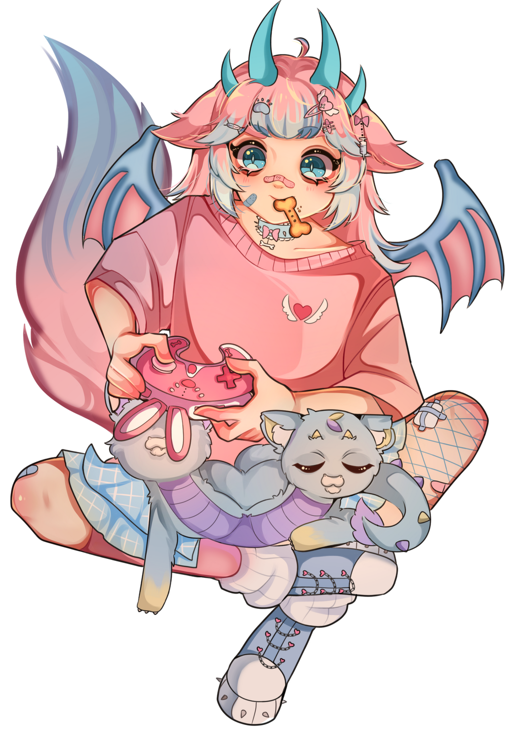 A VTuber Hellhound - not a CAT, not a FOX - looks may be deceiving - obsessed with everything pink, cute, fluffy (especially pink skins in games...), kawaii fashion and PLUSHIES!